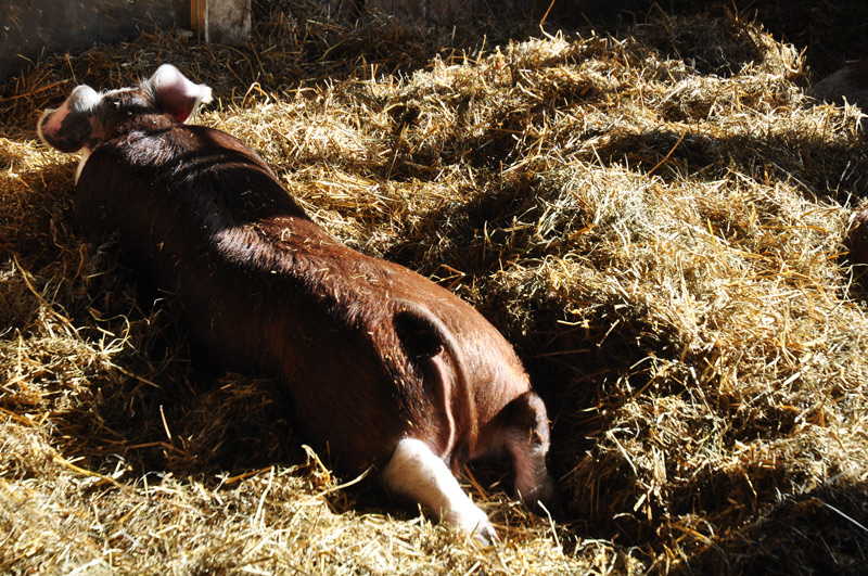 Pigs love the sun too. No digging into the straw yesterday at a high of 52F (11C). Everyone was laid out in the sun.