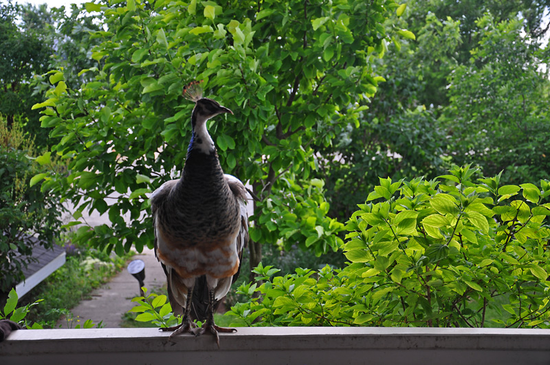The pea fowl have finally discovered the gardens.