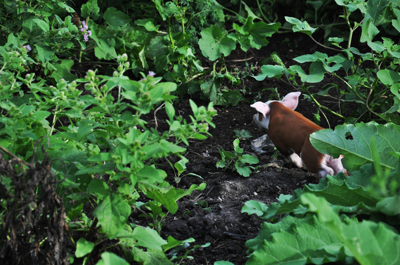 Molly took her piglets into their weed garden yesterday.