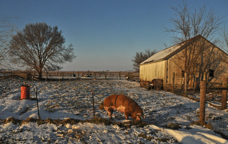 I have never had such little pigs in the winter before but this is generally a tough heritage breed and as long as their bellies are full and they are dry I am assured they will be fine. It is hard to fight the urge to put up a heat lamp but the threat of fire in this old barn full of dry hay and animals is just too terrifying.  And with pigs you cannot get the light low enough to properly warm them anyway – they play with anything.