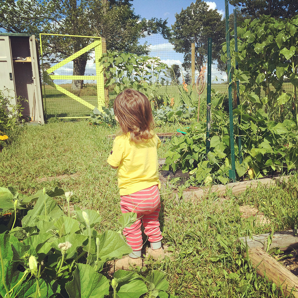 There are pros and cons to raising children in a rural area (our nearest town, six miles away, boasts a population of around 1800).  The cons are about what you’d expect — very few activities geared toward little kids, hard to meet new people, etc.  But it feels like the pros outweigh that.  I realized last autumn that M has no concept of a “yard”.  We were at a friend’s house in the suburbs, and when we went out to their backyard, M made a beeline for the swing set a couple of houses over.  I mean, she’s used to stepping outside and feeling like the whole world is her playground!  I love being able to sit in one spot and keep an eye on her as she runs around, not worrying about how noisy she’s being or whether she might run into the road.4