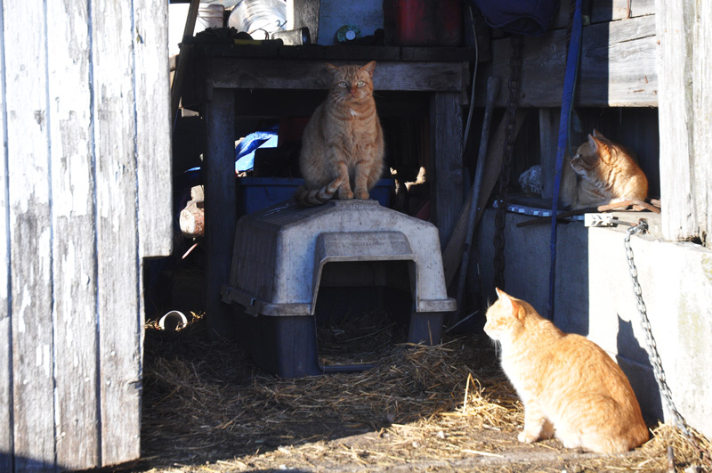 Cats in the barn. I did not see Moon the new brown stray but John said he had been around. He is a wanderer so I am not worried.