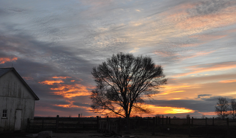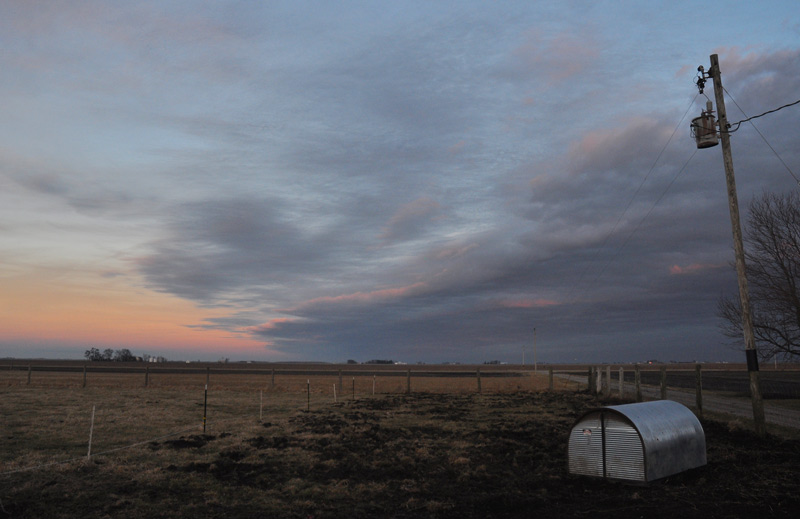 The reluctant peach-light hung in the air for a long time, before following it’s stretching tether down over the horizon to catch up with the the sun. In the gathering dark I went out and found the middle sized pig waiting at the gate again and led her back to her sleeping herd. Who knows where they will be this morning. My fence is truly breached and not on the list for this busy day!