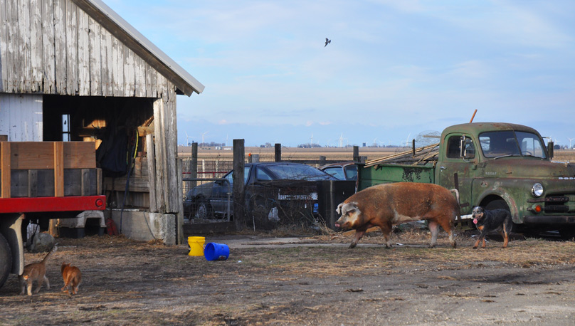 So many fantastic photos today…mournful moon, a pig and a steer and that amazing sunset! Drive carefully, looking forward to seeing who your visitors are 😀