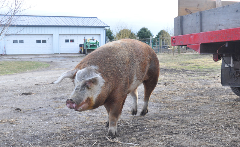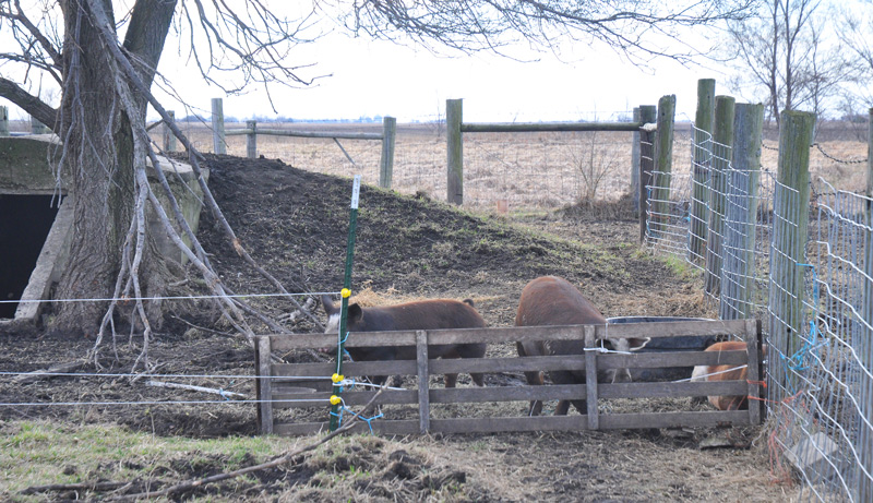 And during Sheila’s afternoon saunter we found the missing pig. She is in heat and would not leave this steer. I took her back three times but she still found a way back to him and made a mess of my fences along the way.