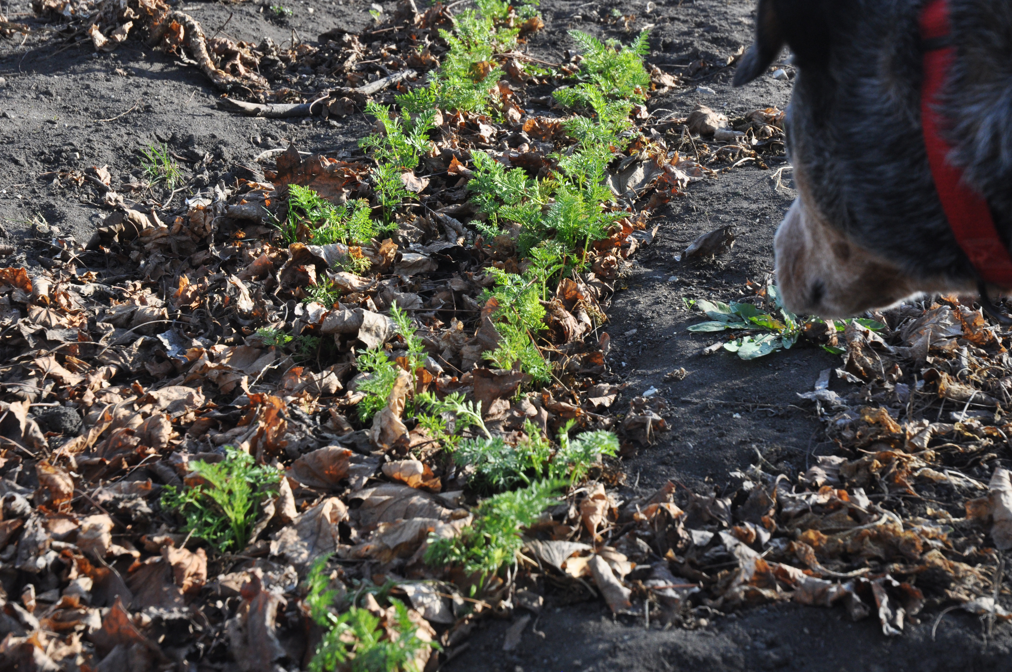 The carrots survived the winter and are growing.