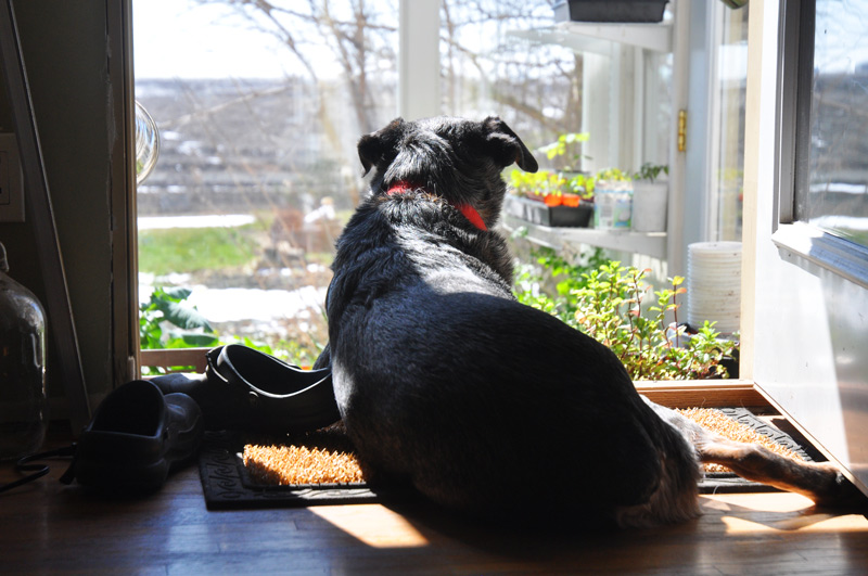 Now I am home within walls, the dogs sit in their accustomed places, watching me waiting for the movement and sound that means we will begin work for the day.