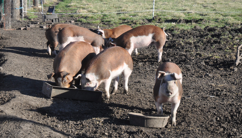 Luckily for their minders the pigs did not escape while I was away. But they are used to the parameters of their big field now. They have settled.