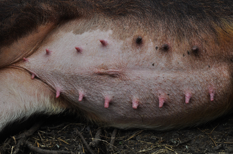 Here is a close up so you can count too – yup fifteen. Usually the teats line up in pairs and we have an even number. So, Molly – no more than fifteen babies please.