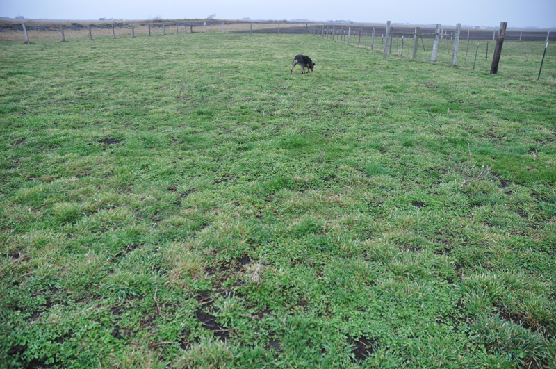 Here is a patch of pasture that shows the amazing fertilising power of a dollop of manure.