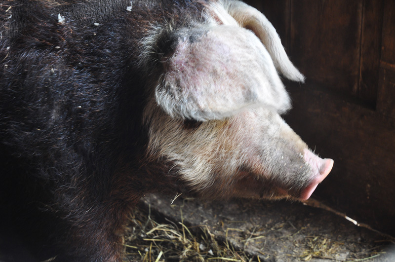 When I checked her even later in the night she was asleep against the bar closest to the warm lights. Fast asleep, her breathing even and slow. I could see the unborn piglets bashing away inside her belly.  If all goes well this will be an energetic bunch of babies.