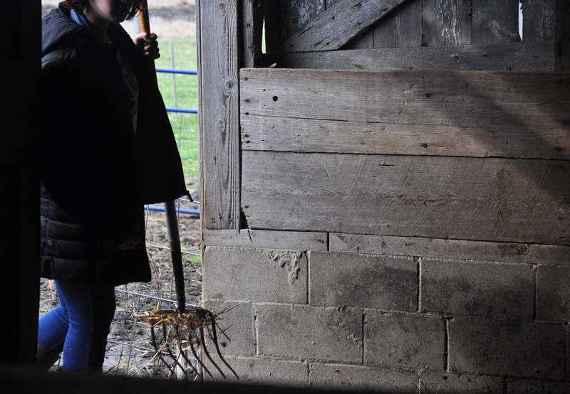 It was grim and chilly yesterday too and the Cadet and I worked on the inside of the barn.  Talking the whole time, as we do.