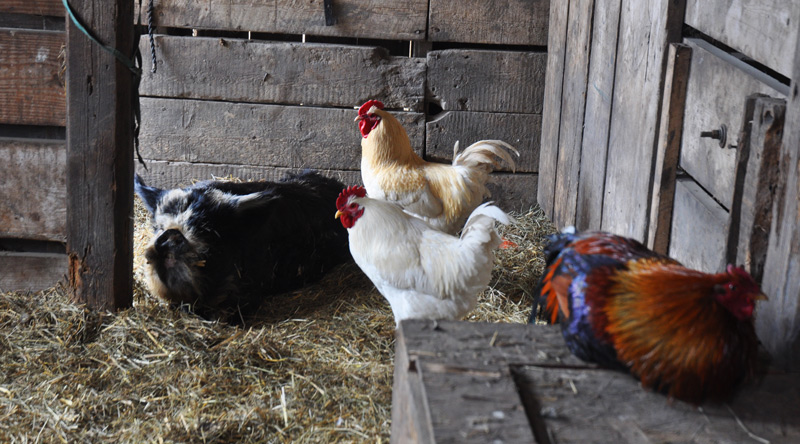 So I shut Mollys big East door last night and jammed straw along the bottom to cut the draft. Molly inspected the job with her teeth pulling the straw back out and chewing on it. Then I put down more wood chips in the center for her bed and she came across and set about eating them too. “Eat not your bed.” I said, to Molly as I set up the heat lamps in the babies creep just in case she should surprise me and farrow in the night. But  she just looks at me quizzically,  munching on the pine as though I am speaking another language.