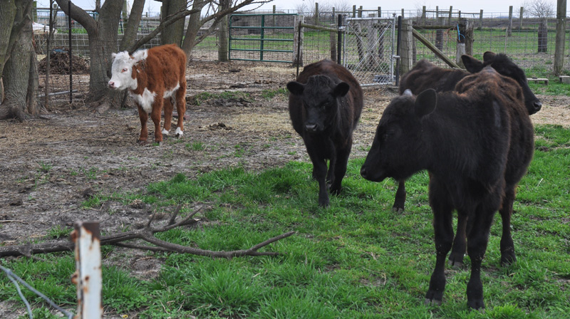 Remember I mentioned the rubber band dehorning method? I know you mentioned this animal is particularly friendly, but on my cattle, even though they are friendly and petted and brushed, I usually cannot put a halter on them or lead them (except my milk cows, Jane and Shannon). Therefore, when I have to dehorn or castrate an older calf, or when I have a beef momma cow bred artificially, I give them a little tranquilizer. This is really, really helpful. For example, during the rubber-band dehorning process, it is important to cut the hair around the base of the horn. If the calf is a little bit sedated, it is much safer to do this, as I use scissors. I practice brushing all my calves after they are born in the spring (born outside on pasture), so all the cattle are used to and like being brushed. They particularly like being brushed on their rumps. This is handy, as I can give them a little tranquilizer while brushing them, and they usually don’t even know it! I use Xylazine, which I get from a vet. I hardly use any drugs, really only the tetanus antitoxin vaccine, but I do find the Xylazine very helpful as I work alone (well with the Border collies and Maremma dogs!). It also makes the inseminator very happy, as the beef mommas are then very quiet, and it is easier for him to do his job safely.