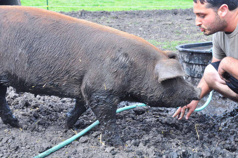2. What a lovely set of photos today. The brilliant green and orange on that plate, Miss Tima and the steps, and all the lovely piggy shots – I especially like the ‘happy bacon’!