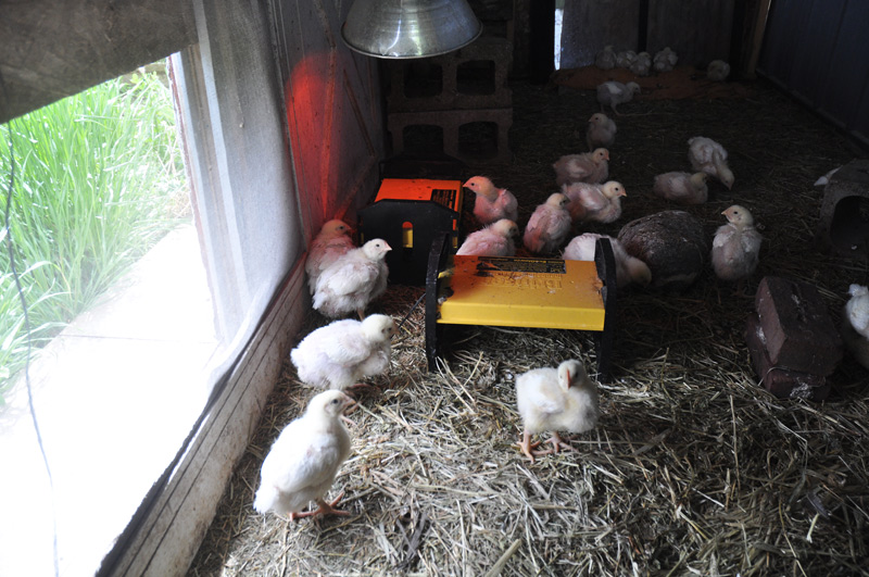 The meat chickens are growing fast. They will go out into the chicken tractor in a week or so when the weather settles.