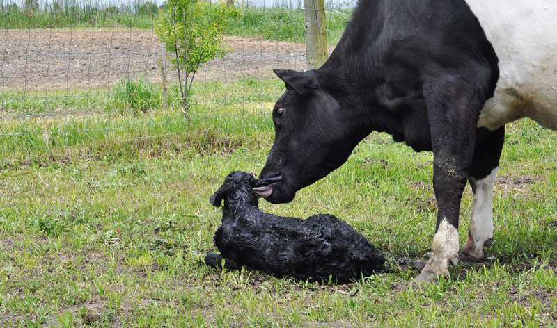 But here is Lady Astor with her baby.  Born yesterday at lunchtime.  I saw her looking uncomfortable – moved all the other cows out of the field she was in, she lay down as I walked away and within about 30 minutes we had a little bull calf.