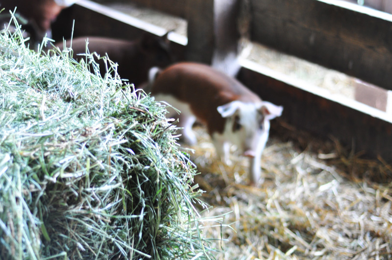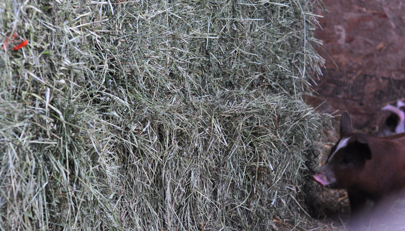 I have to be careful they don’t eat too much of the alfalfa – they will get too fat too fast! I will get the escalator out when Poppy’s piglets are a little bigger and load it all into the loft. In the meantime Molly’s piglets are happy to look after it for me.