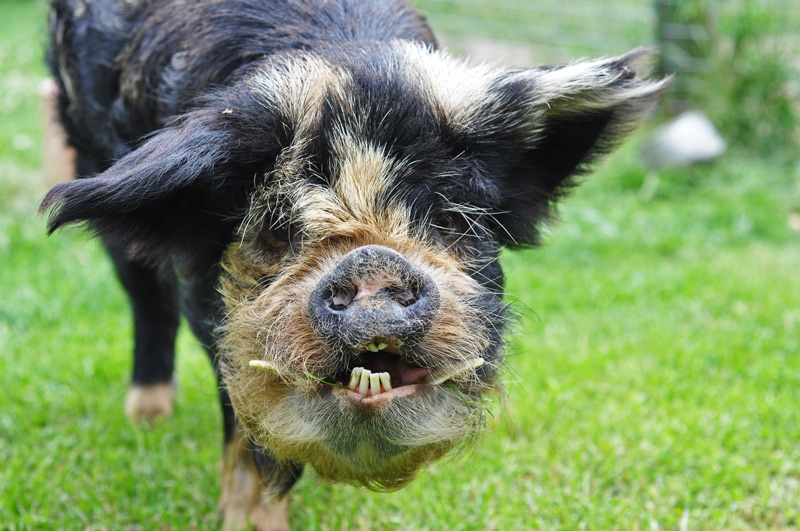 Well in the last week or so Tane has begun to walk – just like a real pig. Now he can walk AND run. All four of his legs working in unison. The only change I can think of is that the grass is growing so he is no longer eating grain, maybe lost a little weight. The change is incredible.