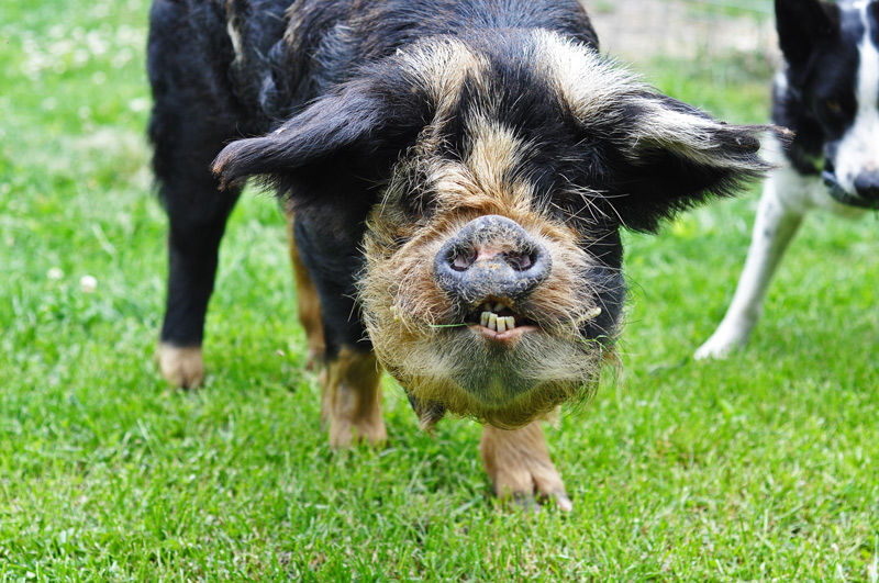 Well in the last week or so Tane has begun to walk – just like a real pig. Now he can walk AND run. All four of his legs working in unison. The only change I can think of is that the grass is growing so he is no longer eating grain, maybe lost a little weight. The change is incredible.