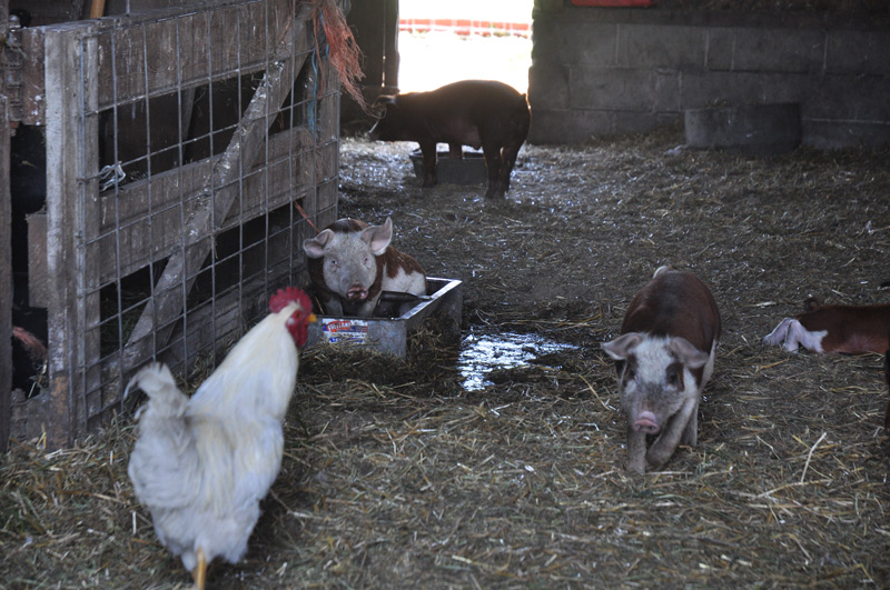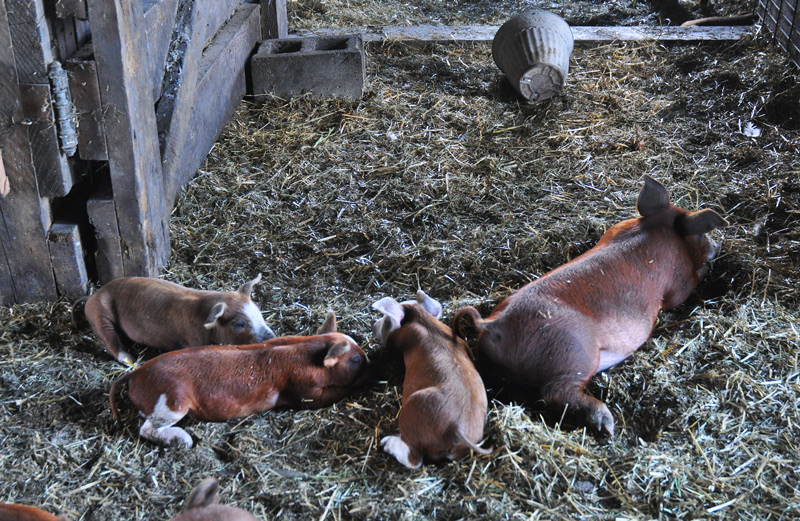 See that piglet actually sleeping in the water trough? She lifted her head up as I lifted the camera.