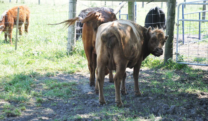 These two (above) – they completely ignore each other unless there is a camera near by. We got up to 100F yesterday down here in the swamp. The cows spent most of the day under the trees.