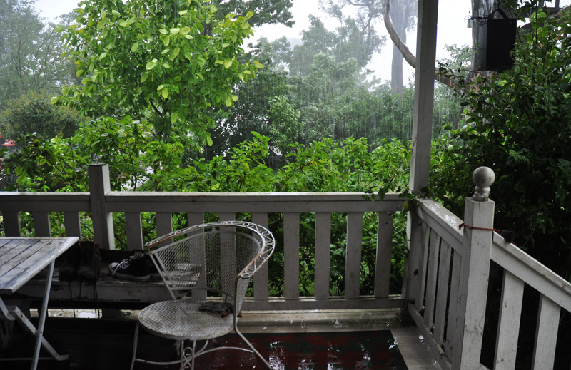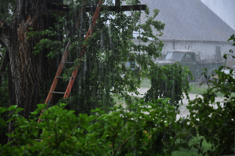 Then in the evening right at dinner time (rosemary potato pancakes) it rained, then poured, the thunder boomed and the lightening crackled, the wind built into a squall, then the storm drew in a huge breath and down the rain came in sheets.