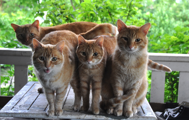 I wish I knew what treat those cats are so fascinated with in the bottom pic. Milk?