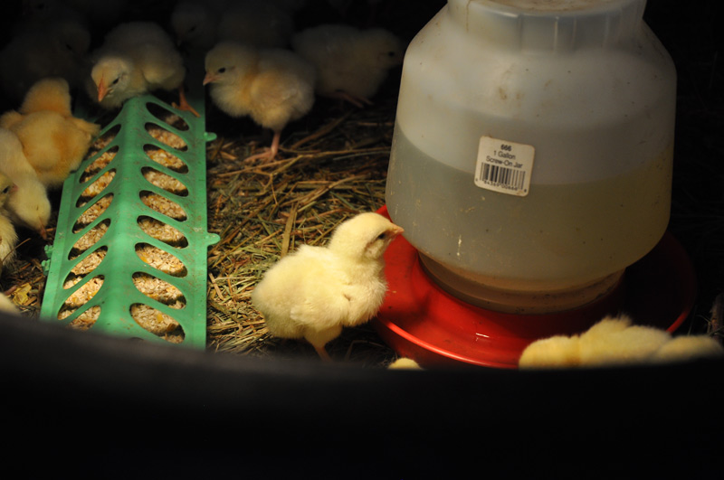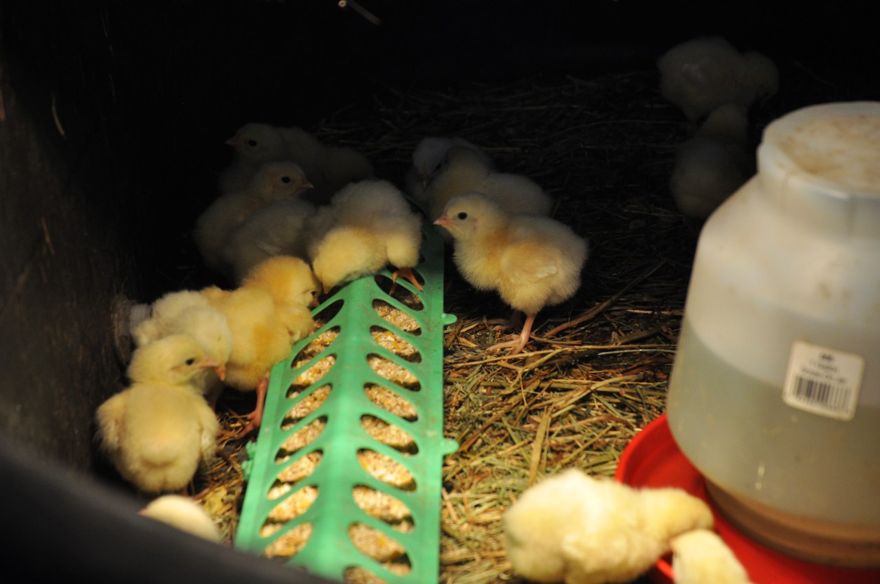 My new chicks have arrived and instead of buying the commercial meat chicken feed these ones are going to be grown exclusively on my own feed. Usually we start on the commercial baby chick food then switch to mine about a month later. The four grain feed oats, barley, corn and wheat is my favourite. All local grains, hand mixed, plus my seaweed, mashed boiled eggs, yogurt, DE and dried molasses. No soy at all.