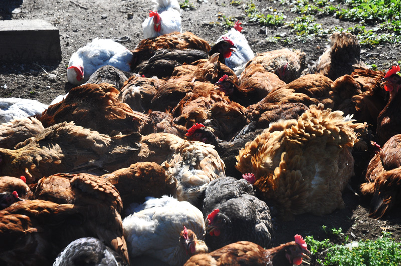 Or perhaps a method of cleansing? Or does it keep them cool, by fluffing out their feathers? Probably it just feels good. Those pictures, especially the closeup of the ladies with their bums in the air, — don’t show them around at the farmy. The chickens might feel embarrassed.