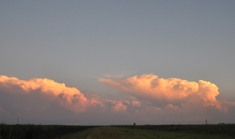 We will have less milk this morning but never mind. These beautiful blowsy pink fluffy clouds, that folllowed in the wake of the storm still had jags of lightning messaging from inside them. Like the forked tongue of a snake flicking in and out of  cotton candy on a stick. Each time lighting up the clouds from within.  It felt ominous.