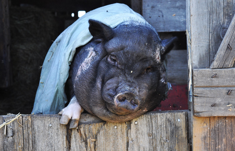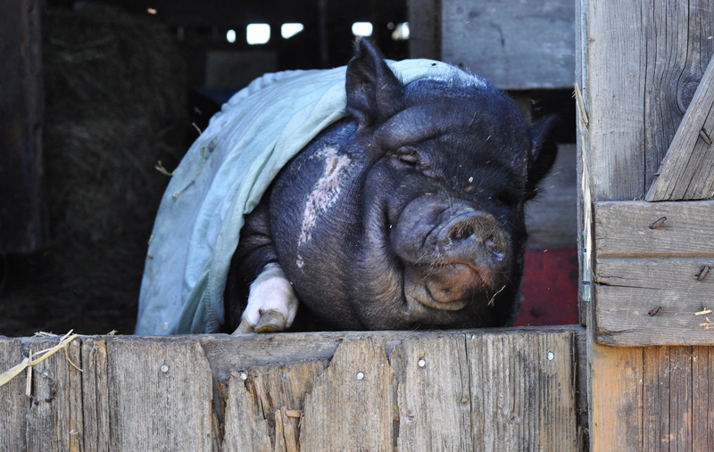 The Armadillo, the potbelly rescue pig recovering from third and in some areas fourth degree burns, decided to try and get out the door yesterday. It is what I call the popes door – a small door cut into the big door, I have no idea why I call it the popes door it has just always been the way.