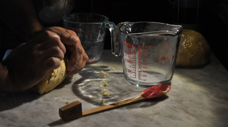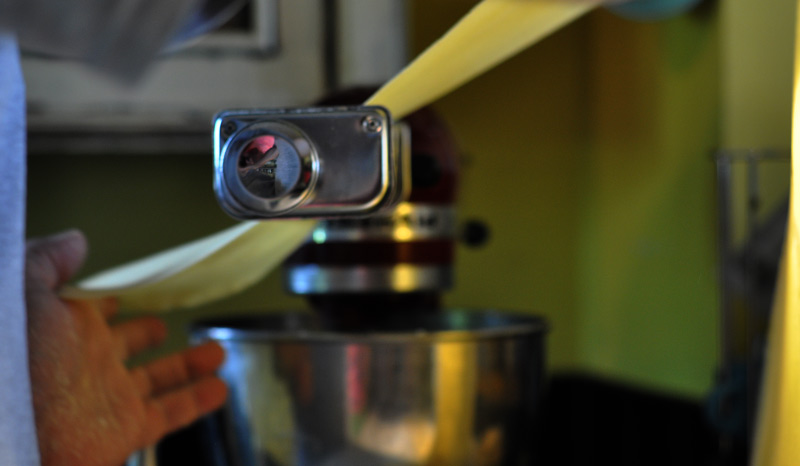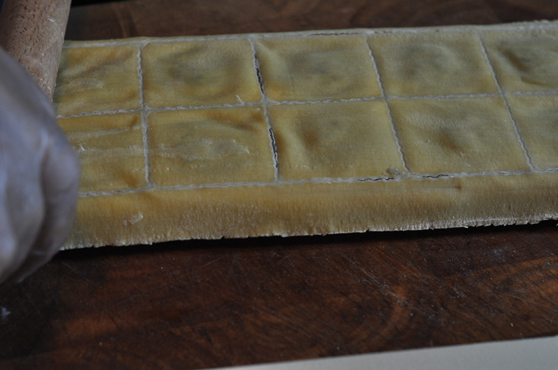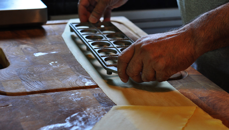 John made the pasta and Alissa and Michael made the little ravioli. Hundreds of them.