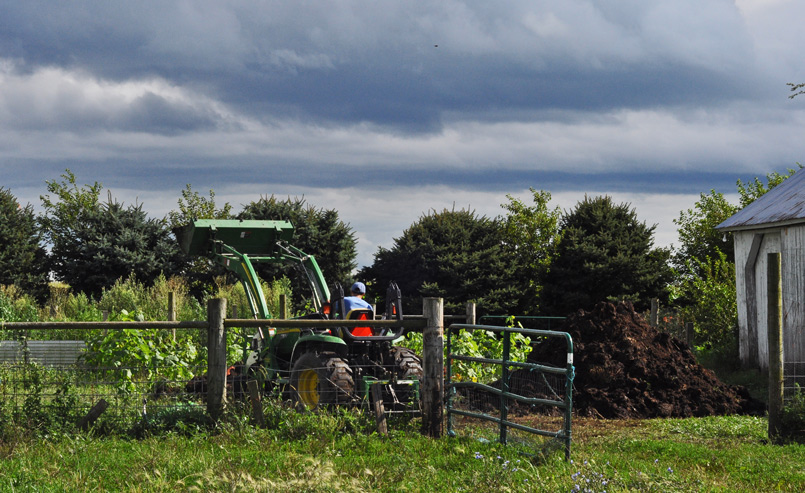The compost is almost completely combined and turned. This is Michael’s job this week, doing a good job and he is enjoying working on the tractor.