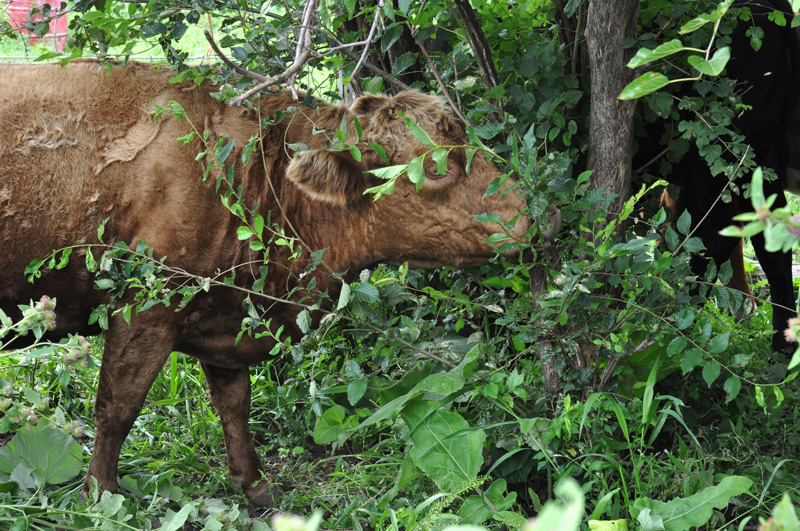 Usually it is quite hot by now, and the feed here is finished and I send a little herd over to the West Side  to loaf about under the trees and eat the long grass. But this year with all the rain and cool growing weather,  I am not in such a hurry and carrying a few more animals than usual. And I like having all the cows home and all together.
