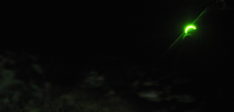 The clouds literally parted only minutes before the eclipse began, giving us a wonderful view through the trees. Though without the helmet there was very little to see.