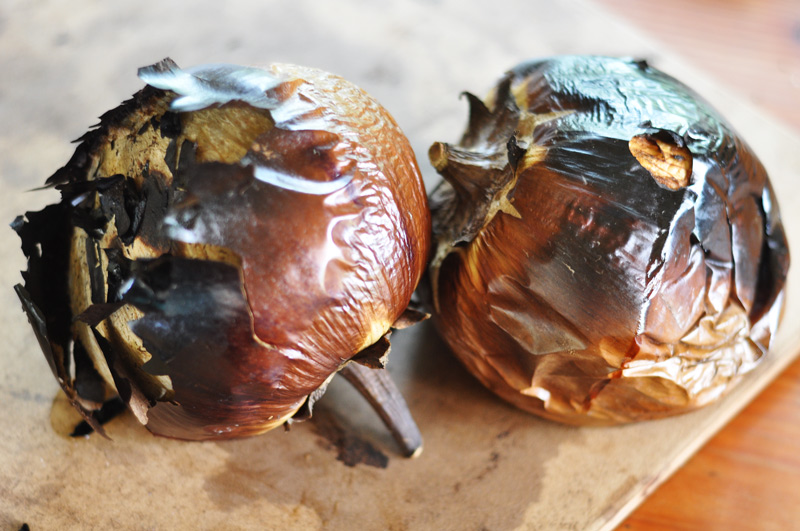 There are only a few ingredients in Baba Ganoush but like all simple recipes it relies heavily on having the very best of ingredients. The eggplant needs to be newly picked and cooked until it is smoking, preferably under or over fire – then left to catch on fire if you are lucky.