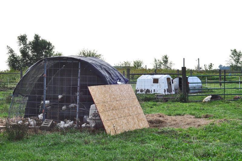 The White Rocks have come out of the Turkey House and are in the metal chicken tractor. Today Alissa and I will drag up the woden chicken tractor and as I identify the males I will put them into the travelling coop to fatten. The hens go in with hen house and become next springs layers.