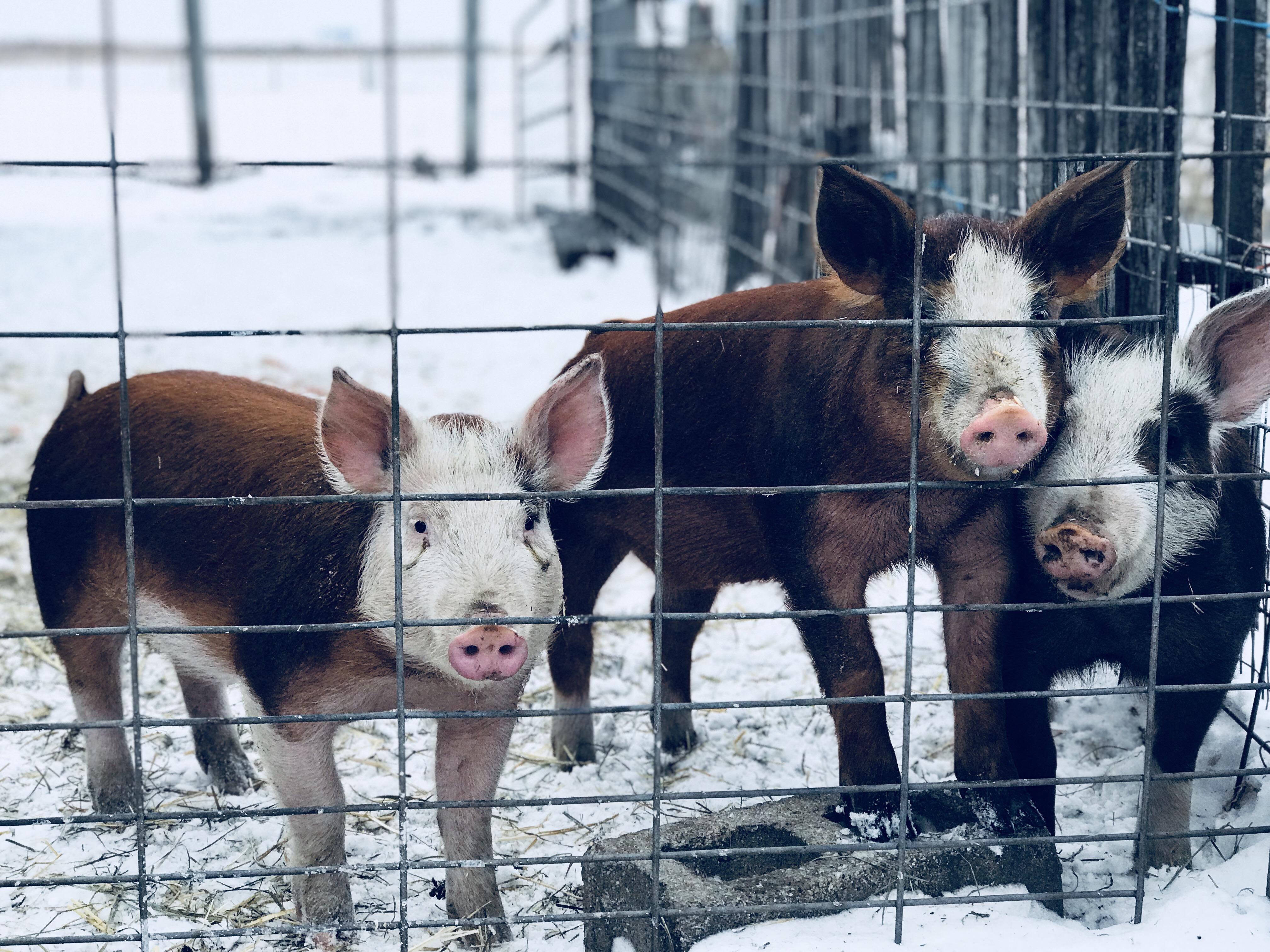 The three little pigs are in excellent condition. They are eating well and have grown out of their baby house. When I arrived home in the night they were sleeping peacefully in the deep straw. I have still got them on free feed and this has made all the difference for them. The cold did not set them back at all.