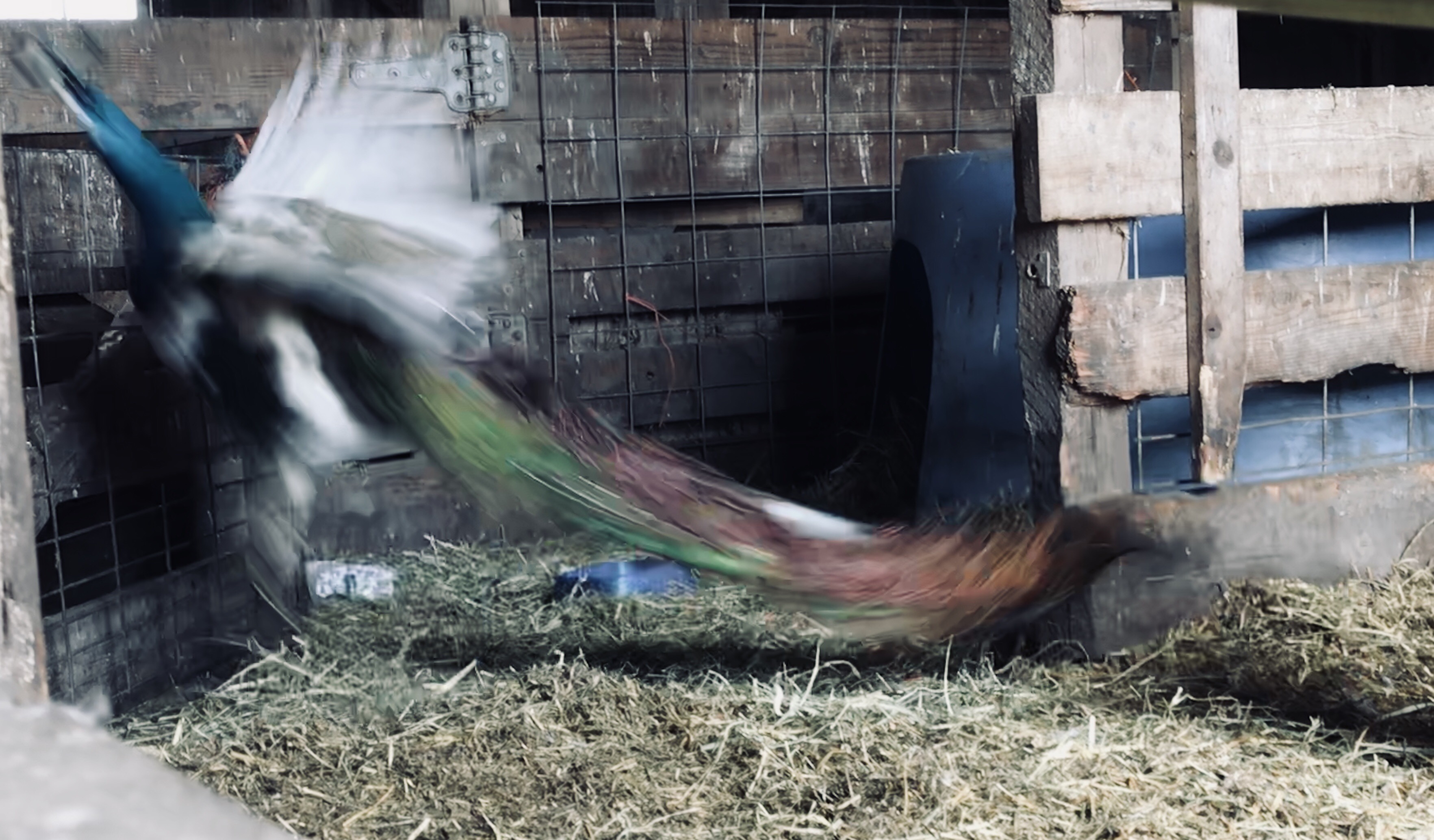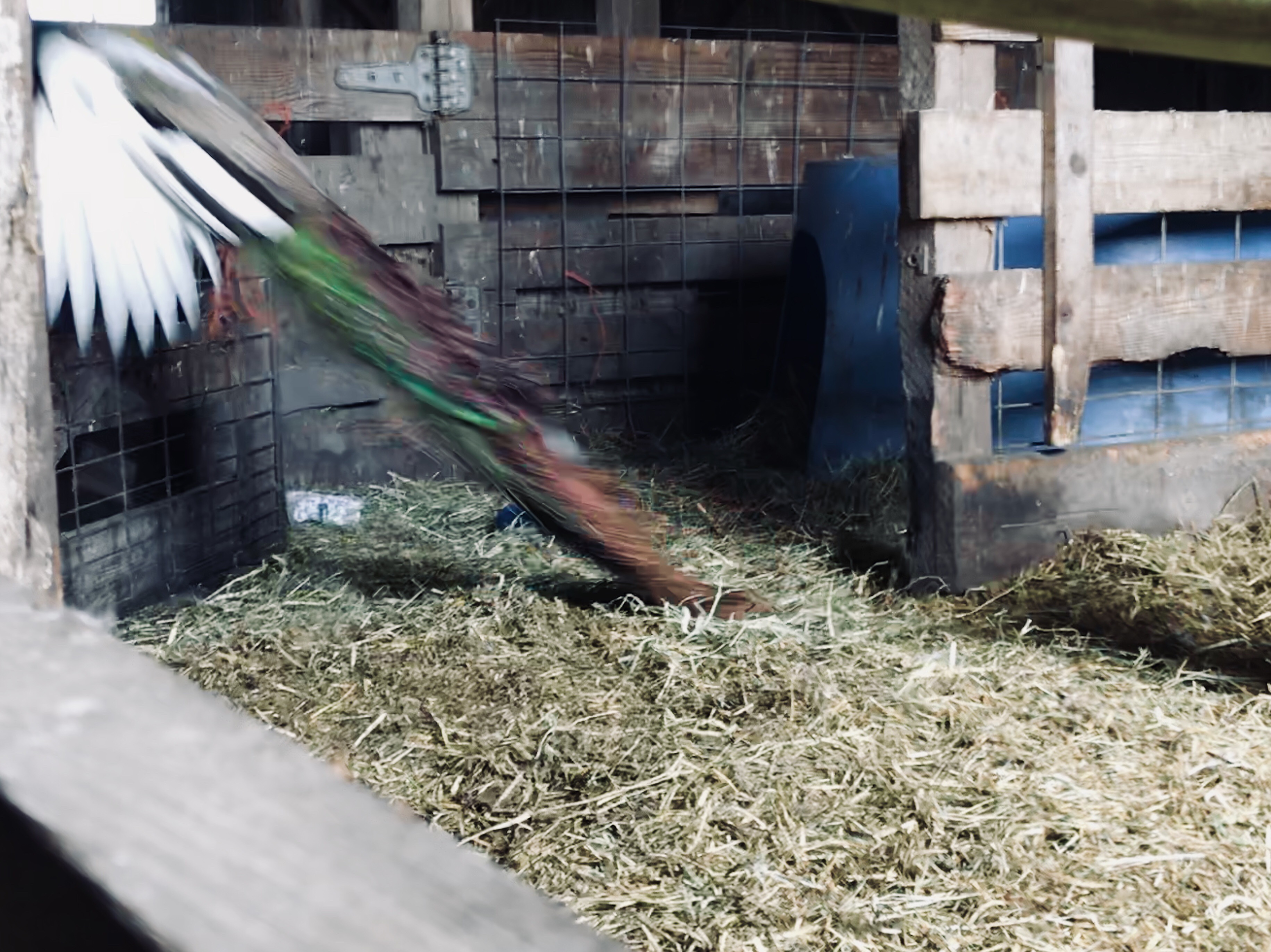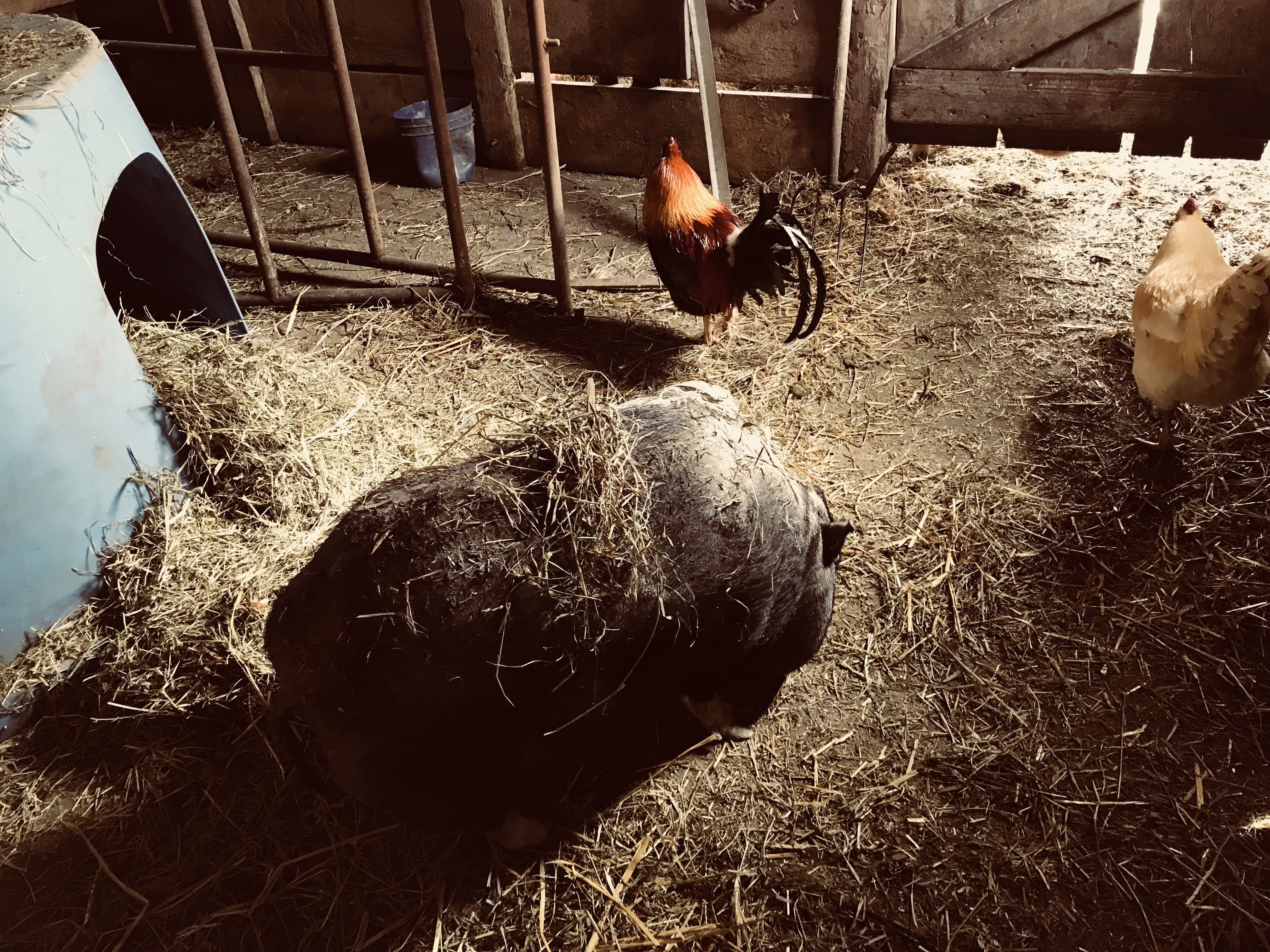 The milking room will not be used again until next year and it gets some nice afternoon sun. Wai moaned and wept and squeaked as he followed his house at a waddle. His house being rolled through the barn. When I left him he was remaking his bed, stomping about. He has to share the field with Tima and Tane now – no-one is allowed to wander the corn fields anymore – both Tima and Wai have put on WAY too much weight. So their gates are shut. No-one is impressed.