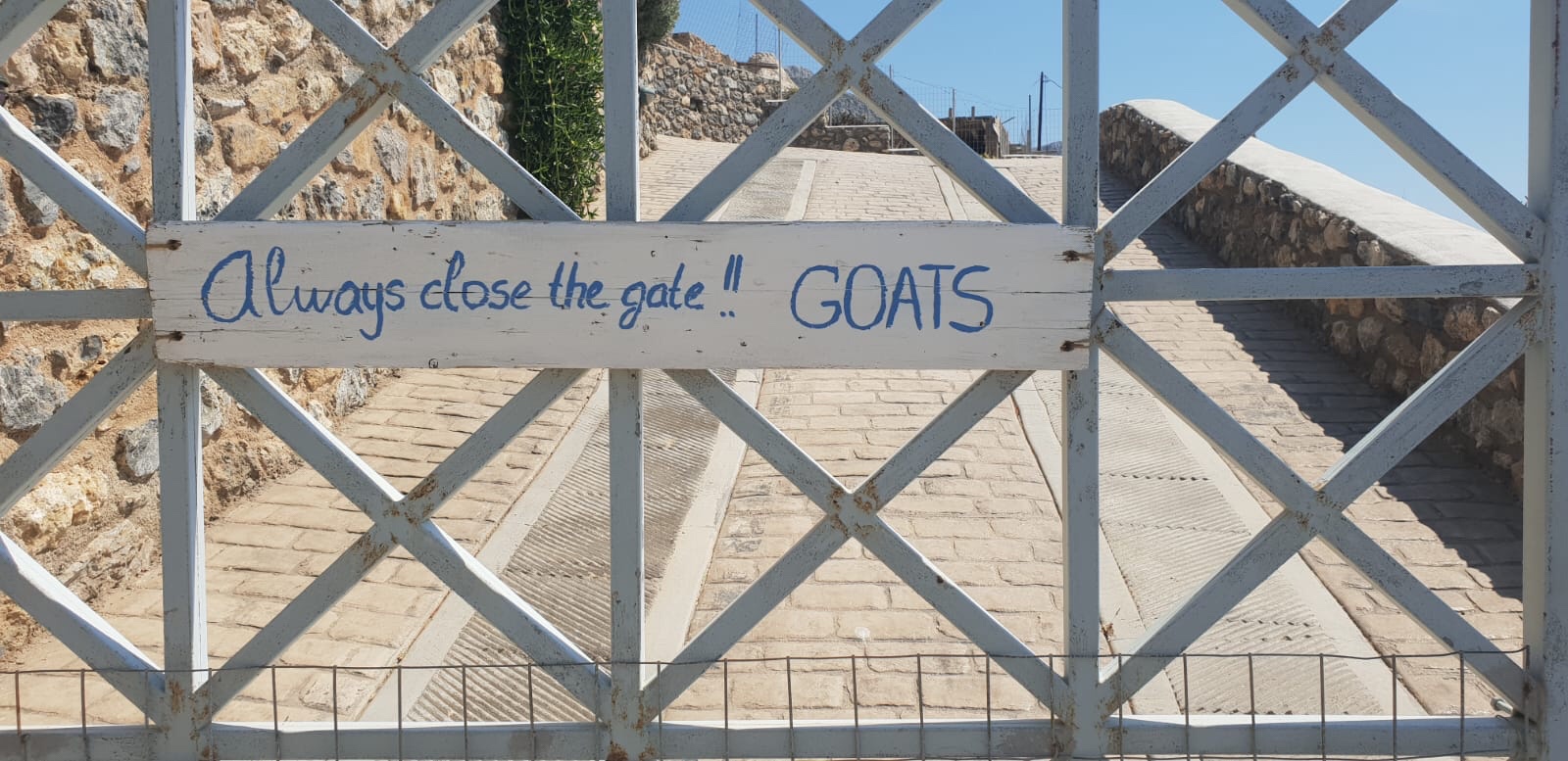 The sign about closing the gate makes me laugh–to me it reads as if it is a note from the goats and not about the goats. 🙂