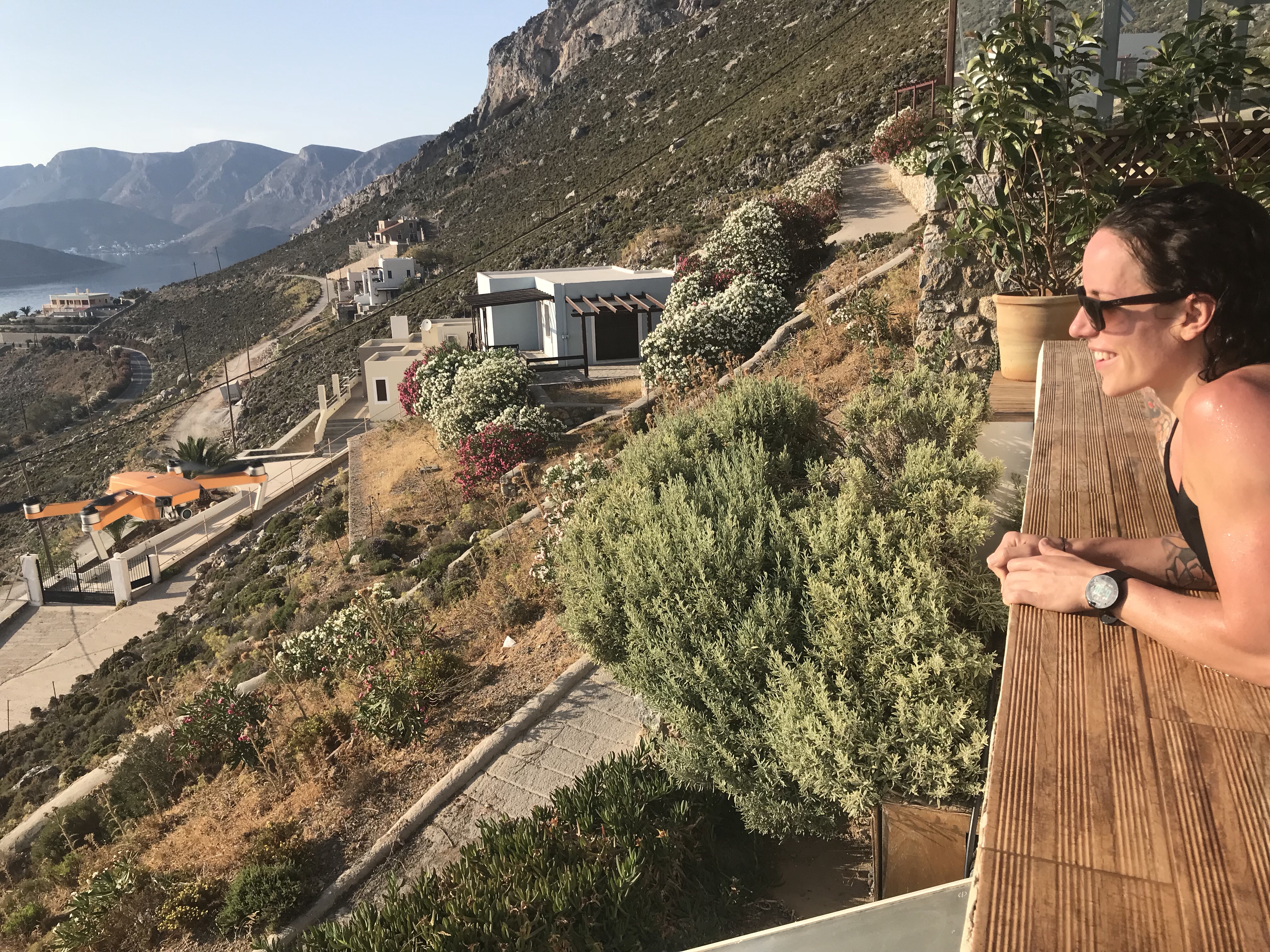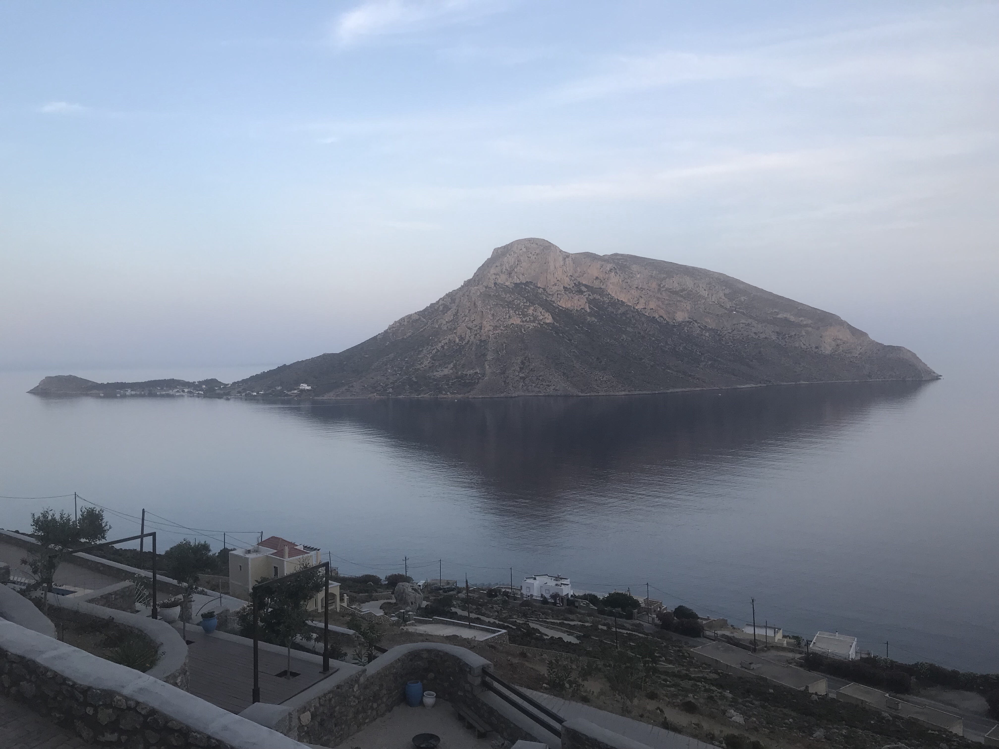 The ferry was swift, followed by a terrifying drive in our tiny rented Suzuki through the ever narrowing streets of the Port city of Kalymnos – I have forgotten its name but ah well – to our little bijou newly built apartment clinging to the side of a mountain with a plunge pool and big doors with other little apartments with pools and big doors clinging to the side of The mountain.