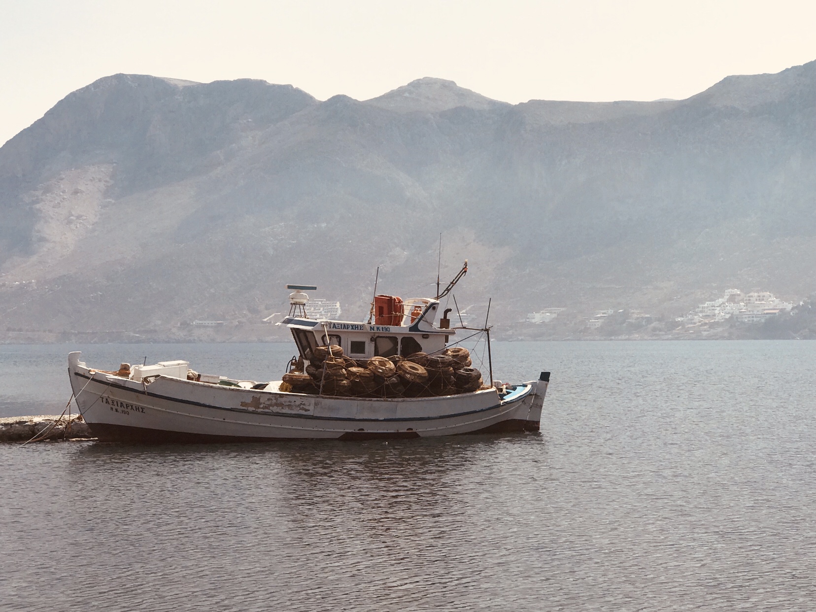 As the small fishing boats came and went delivering vegetables and fish to the wheelbarrow pushing residents the skippers would tie up and wander in to our cafe for a coffee or water and another spanakopita. They helped themselves, chatted for a while and wandered with ease and gentle nods back to their boats.