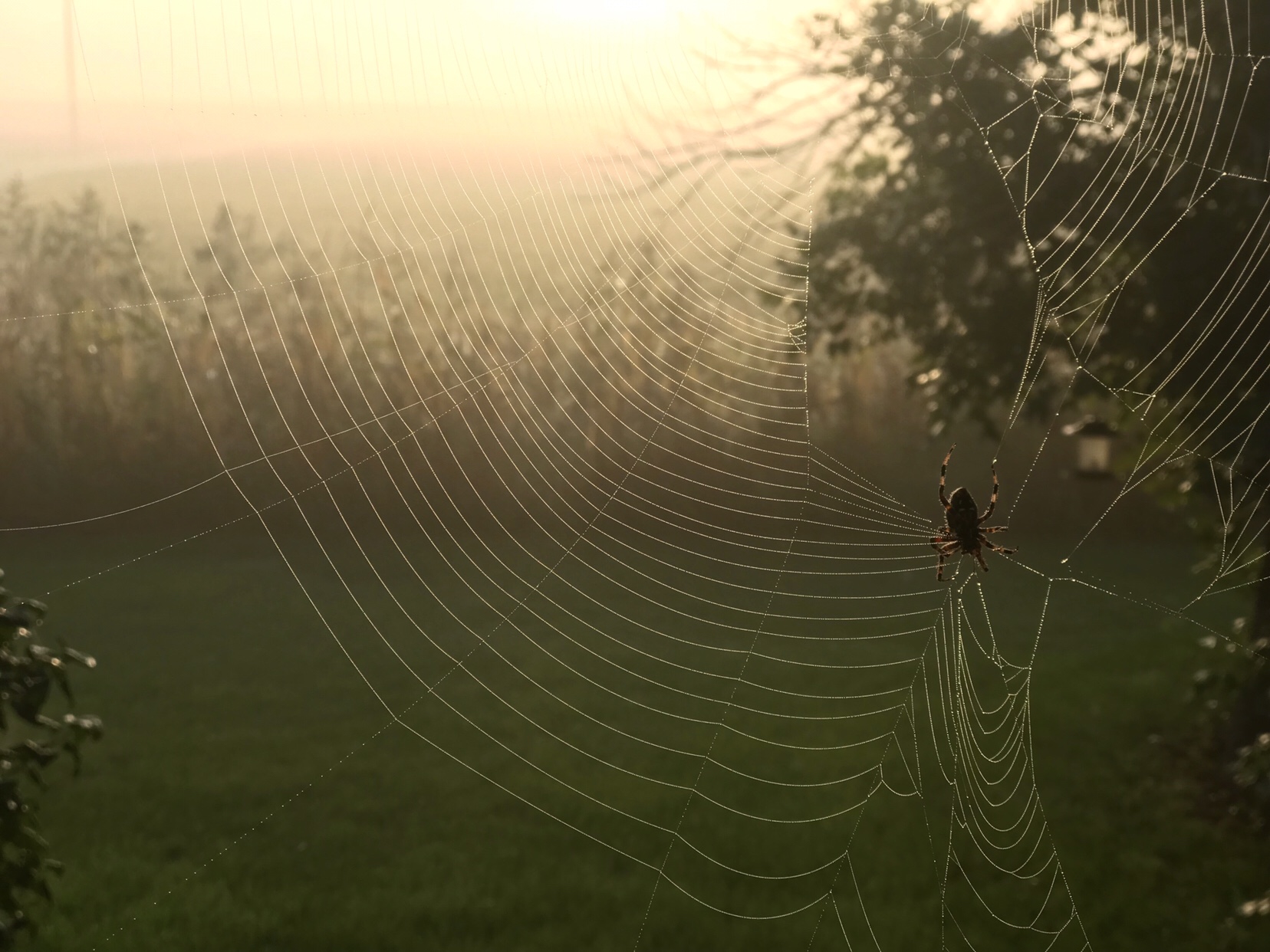 This time of year the spiders are spinning their webs everywhere. Overnight they can cover a doorway in their delicate needle work.