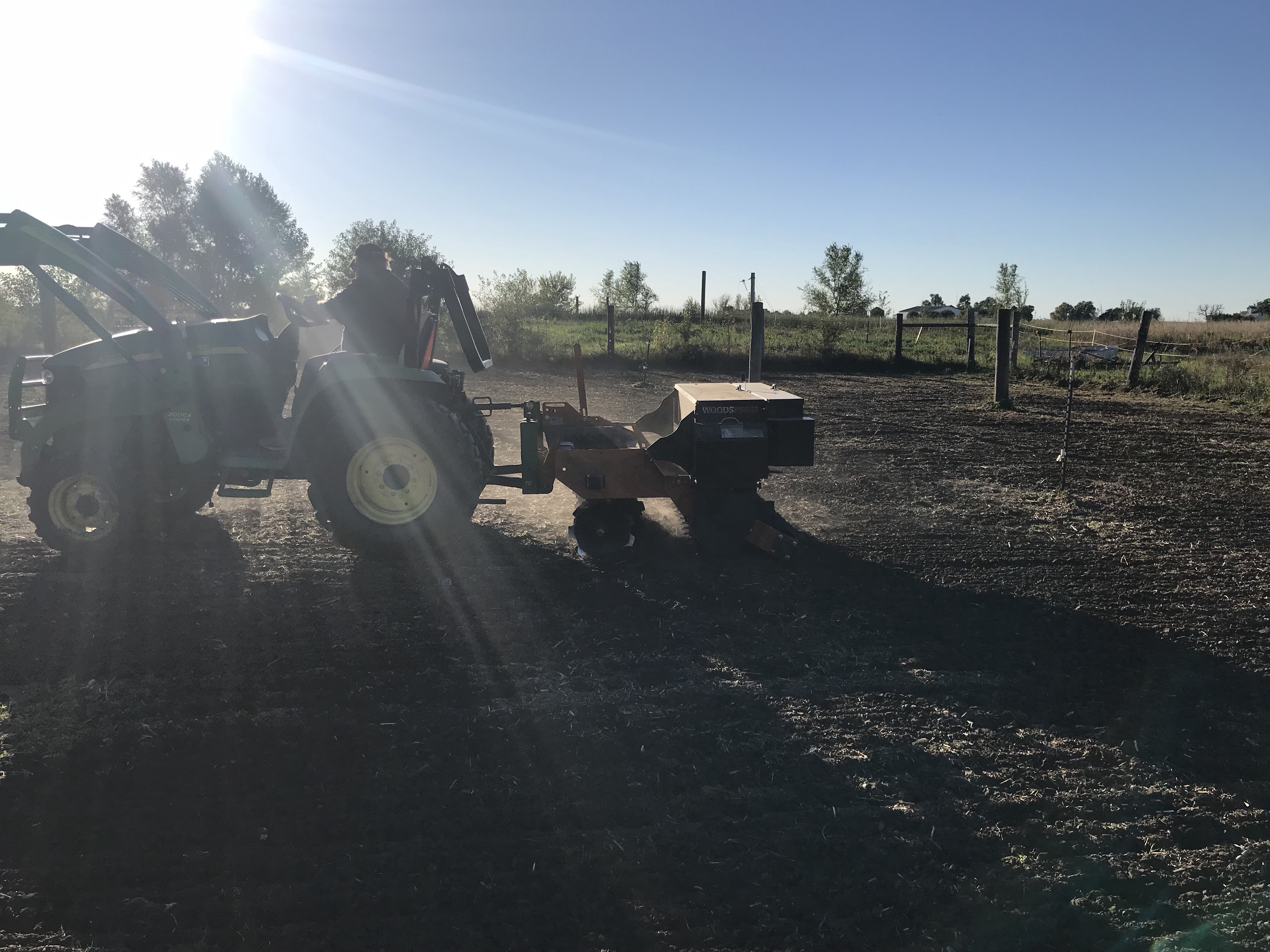 Yesterday I mowed and mulched all the weeds and grass on the back pigs field and John sowed the cover crop.