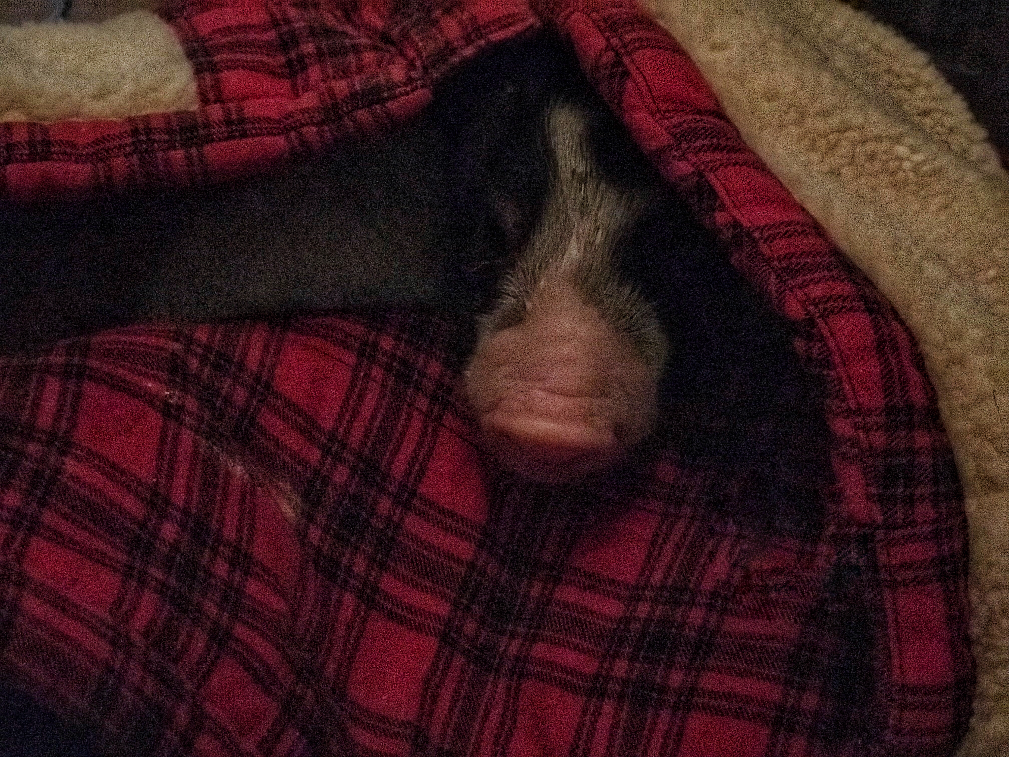 Piglet is so cute in that photo. Here’s what I think he would have said if he could talk; “Rain there? Don’t care. I’m snuggled up in a blanket, so what gives??”