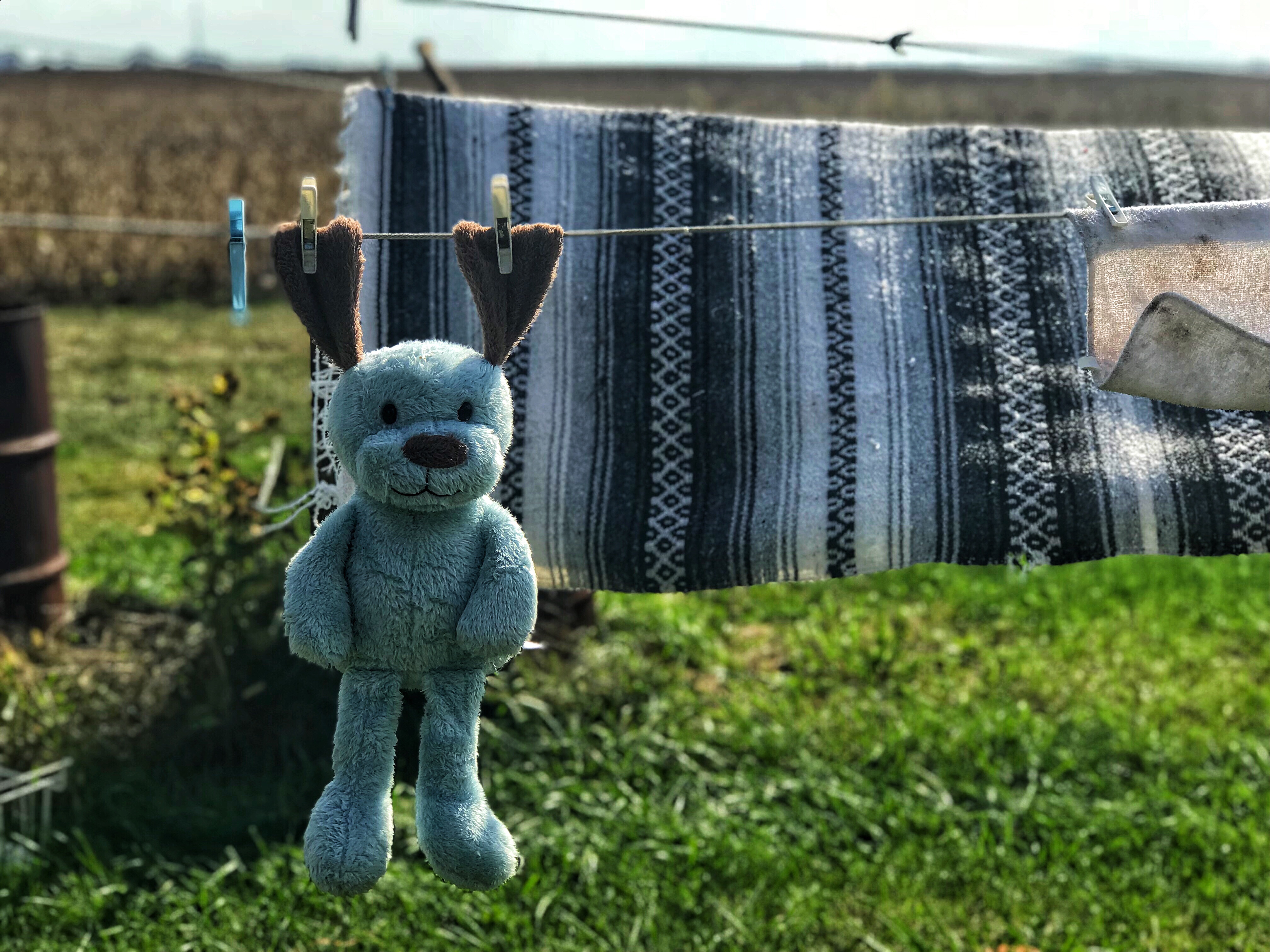 5. I love the photographs you have shared on this post. Says so much. Love how Blue Ted is hanging on a wire and Boo’s sad glare.