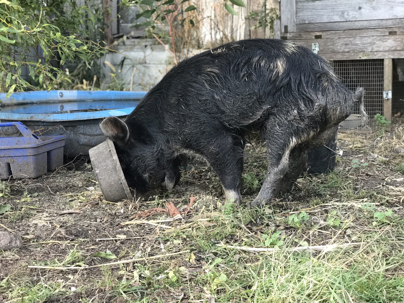 Today I will get Mary to help me put in the bigger blue pig house. They have outgrown their middle sized black one and will want to cuddle together in the coming cooler nights.