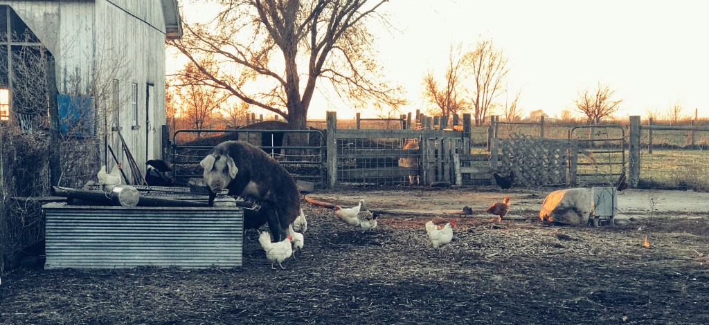 The picture of the the dog, the big pig, and the white chickens is so peaceful, and your entry for today is so controlled– who would guess that farmers are not always stoic or resigned, as two of my one-time favorite rural writers, Robert Frost and Wendell Berry, seem to make them out to be. Even in the midst of all this frustration you find a bit of humor in Molly’s attention to her “enormous bed” and “the three Grumpy Old Pigs” having to be secured so she can relieve herself. I felt (poor pun alert!) relieved when I read that. It is proof that you will manage, as you said. I’m not sure that I could muster that light tone in similar circumstances. Sitting here by the fire on a cold night, reading, it is easy to smile about the pigs. Out there in the barn or yard in the cold or wet, that’s hard. In keeping with our holiday today, I’m thankful that you manage, and manage to post memorable stories and pictures.
