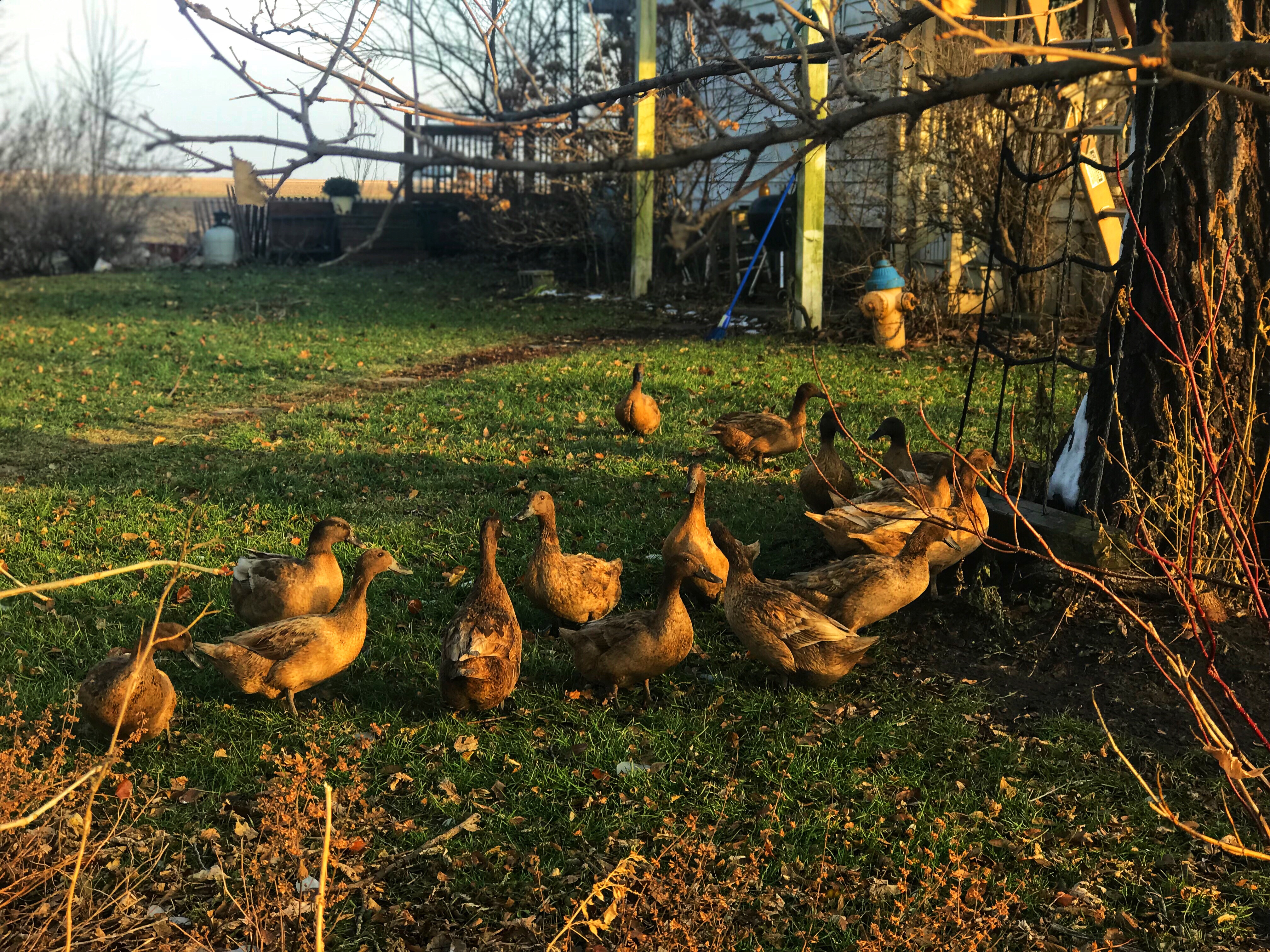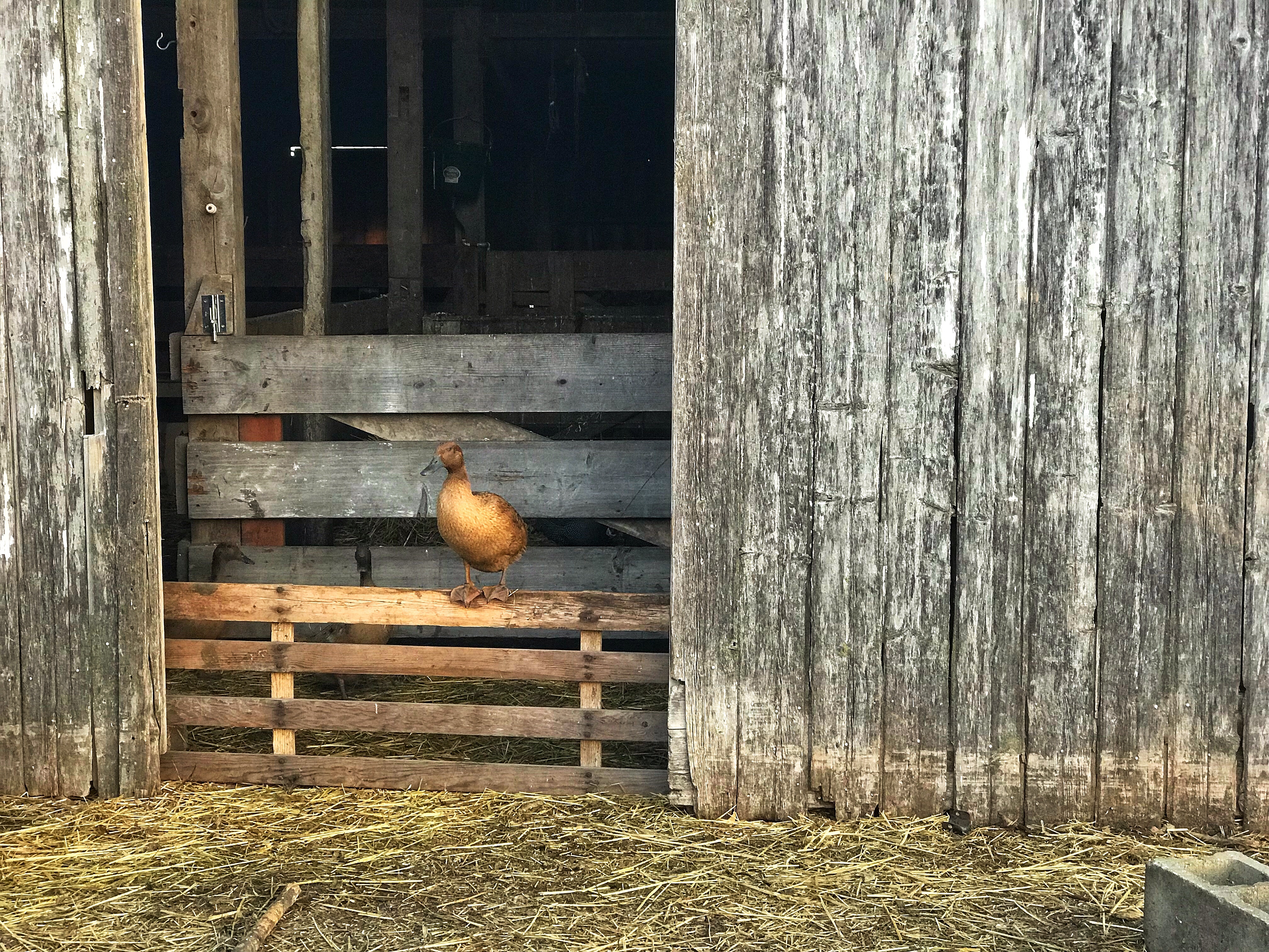 Picking up my bucket of warm water again I walk across the quad to the barn. Greet Duck starts to bob up and down.The ducks behind her begin to pace and call and this duck who is always waiting perched like a sleepy chicken on top of the gate will stop bobbing stand straight up and turn around and jump back in with her sisters. Every morning.
